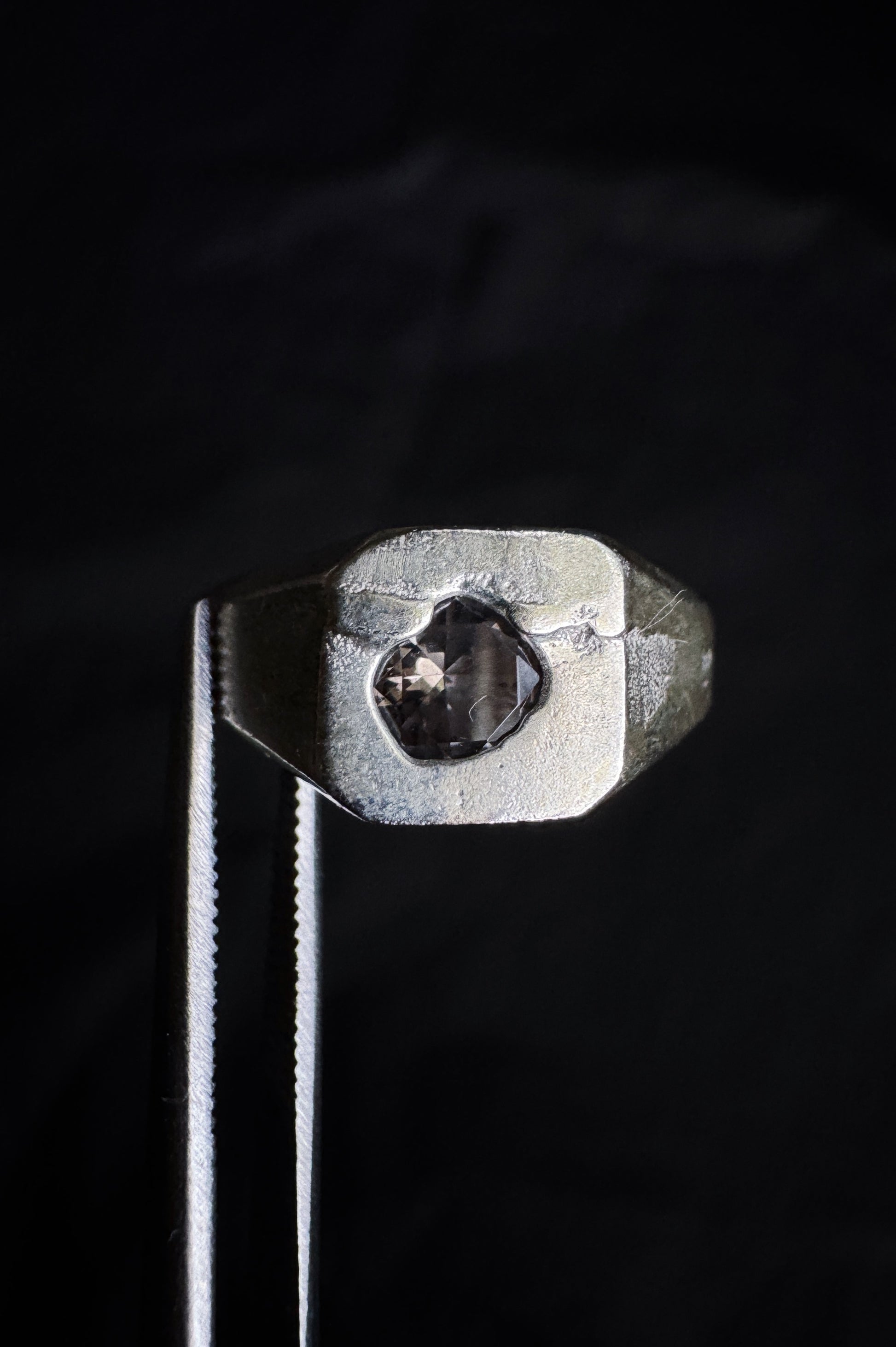 molten silver is poured into a sand mold, the stones are placed before pouring the metal allowing them to move around in the liquid silver before it hardens again. each ring is completely unique and unable to be replicated, this is why each piece looks slightly different :-)