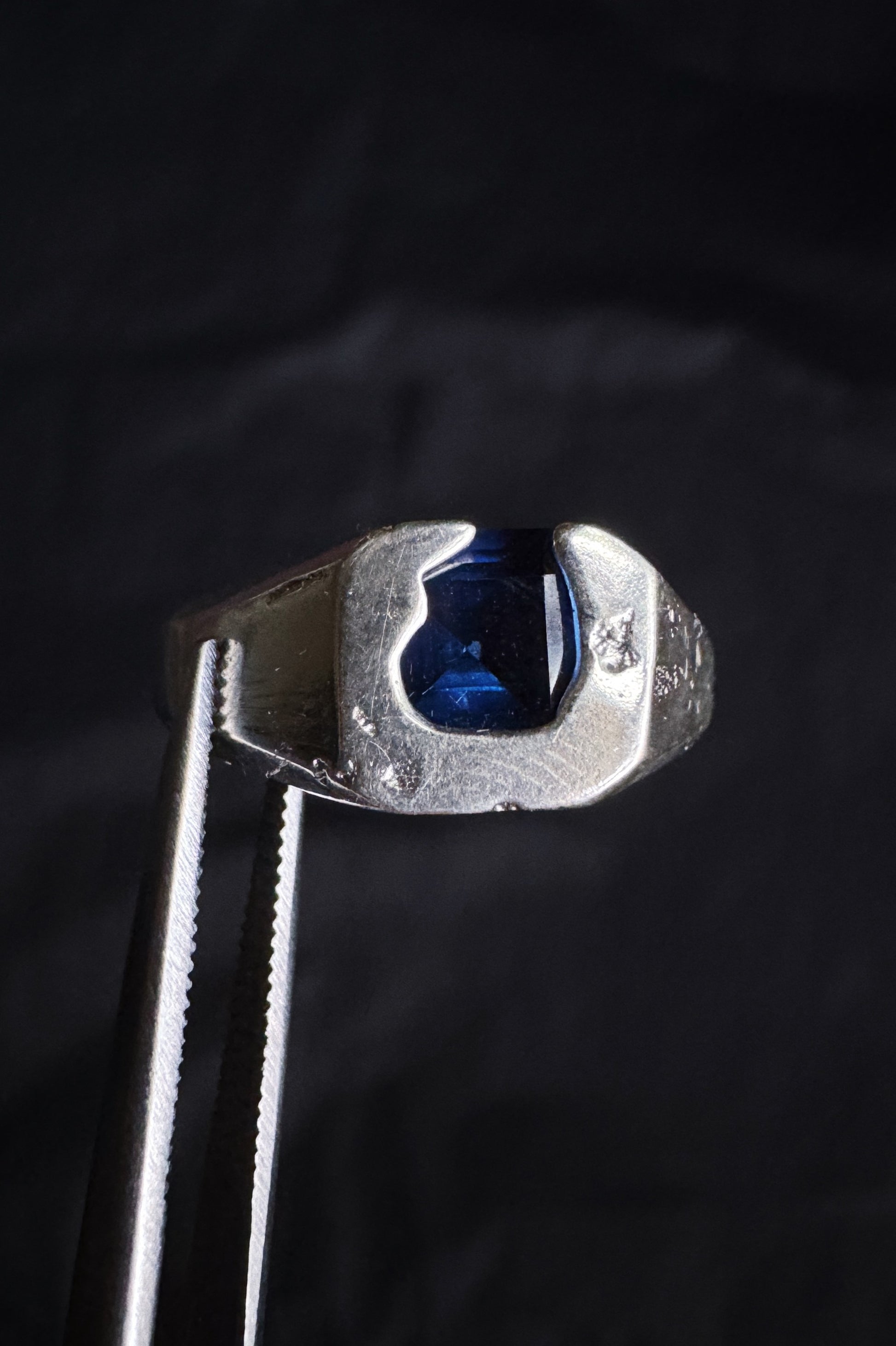 molten silver is poured into a sand mold, the stones are placed before pouring the metal allowing them to move around in the liquid silver before it hardens again. each ring is completely unique and unable to be replicated, this is why each piece looks slightly different :-)