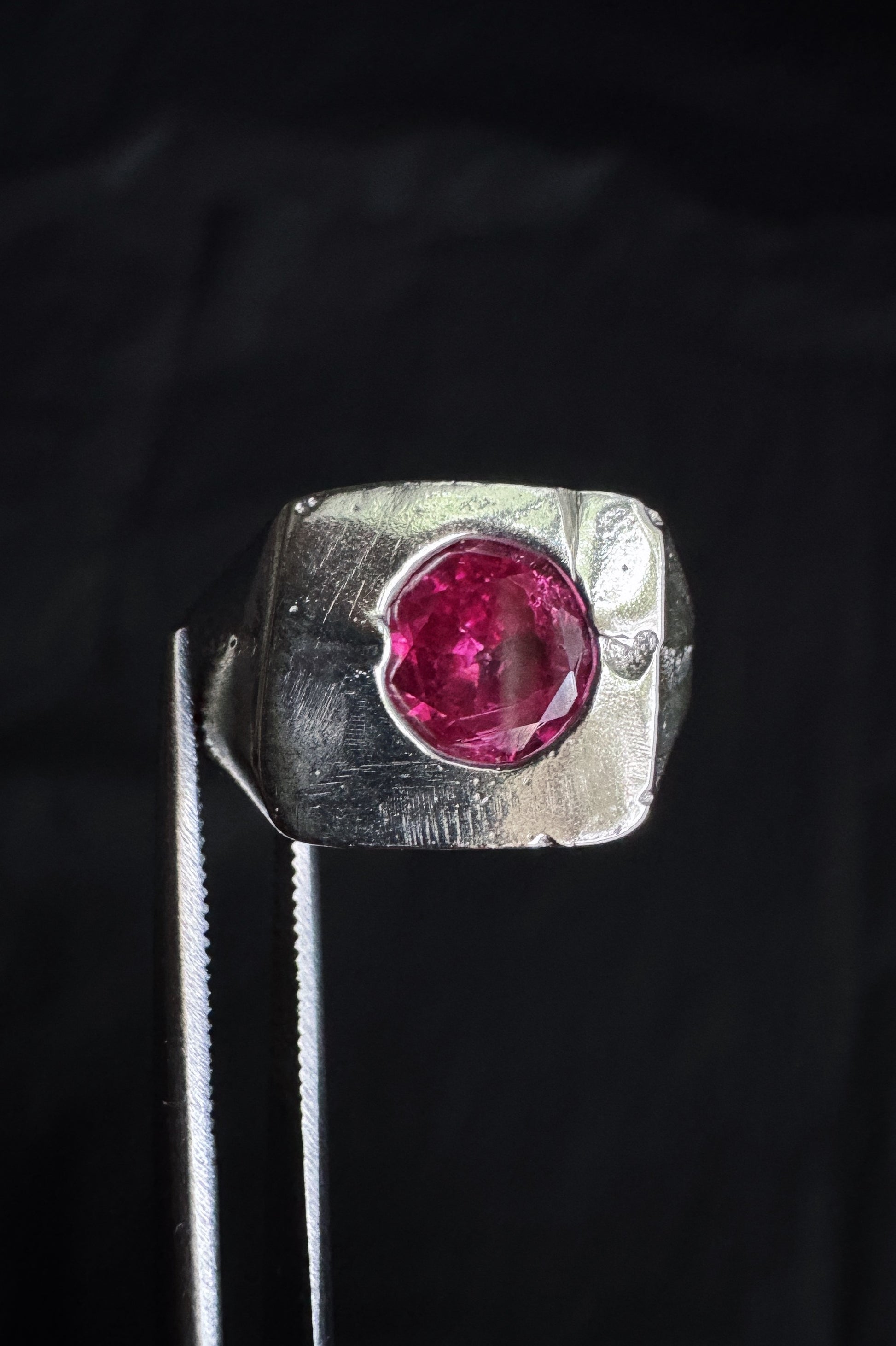 molten silver is poured into a sand mold, the stones are placed before pouring the metal allowing them to move around in the liquid silver before it hardens again. each ring is completely unique and unable to be replicated, this is why each piece looks slightly different :-)