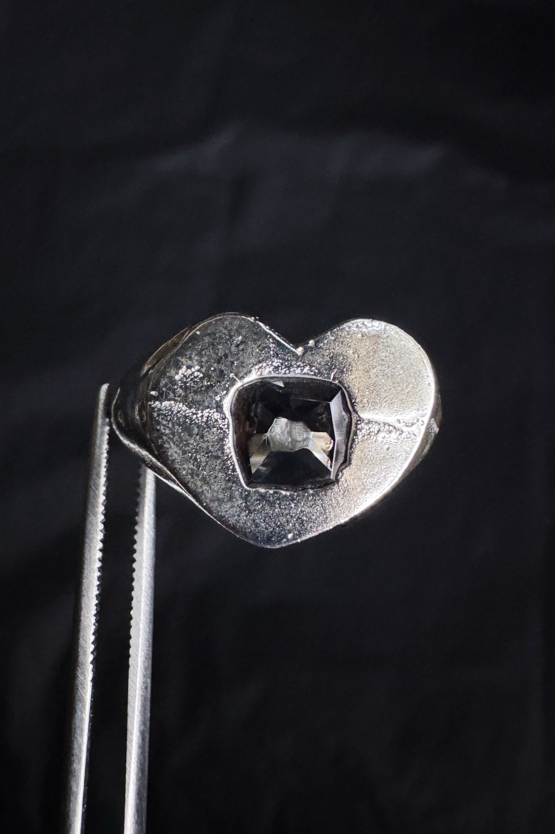 solid .925 silver heart shaped signet with a grey nano cast in place