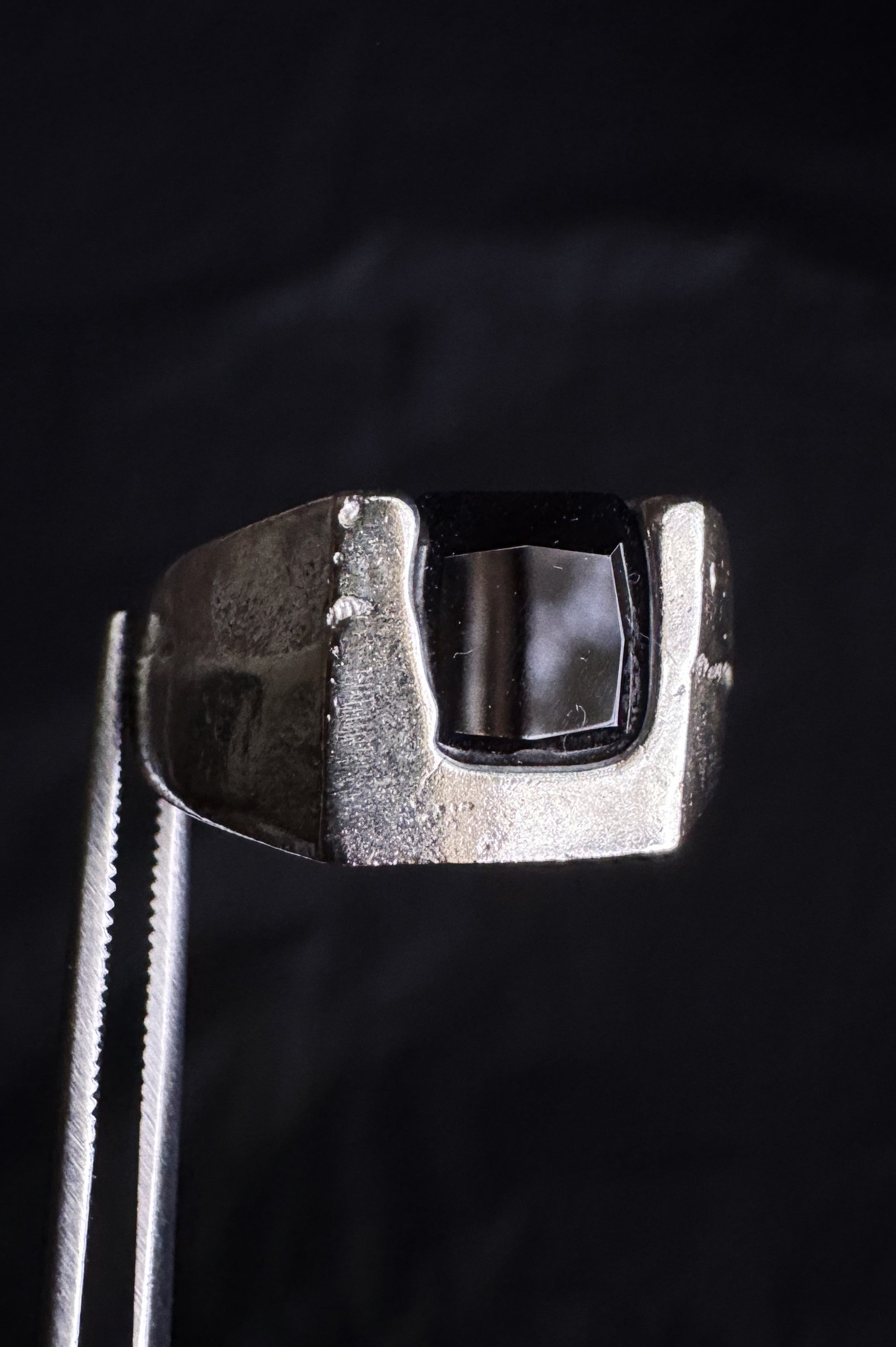 molten silver is poured into a sand mold, the stones are placed before pouring the metal allowing them to move around in the liquid silver before it hardens again. each ring is completely unique and unable to be replicated, this is why each piece looks slightly different :-)