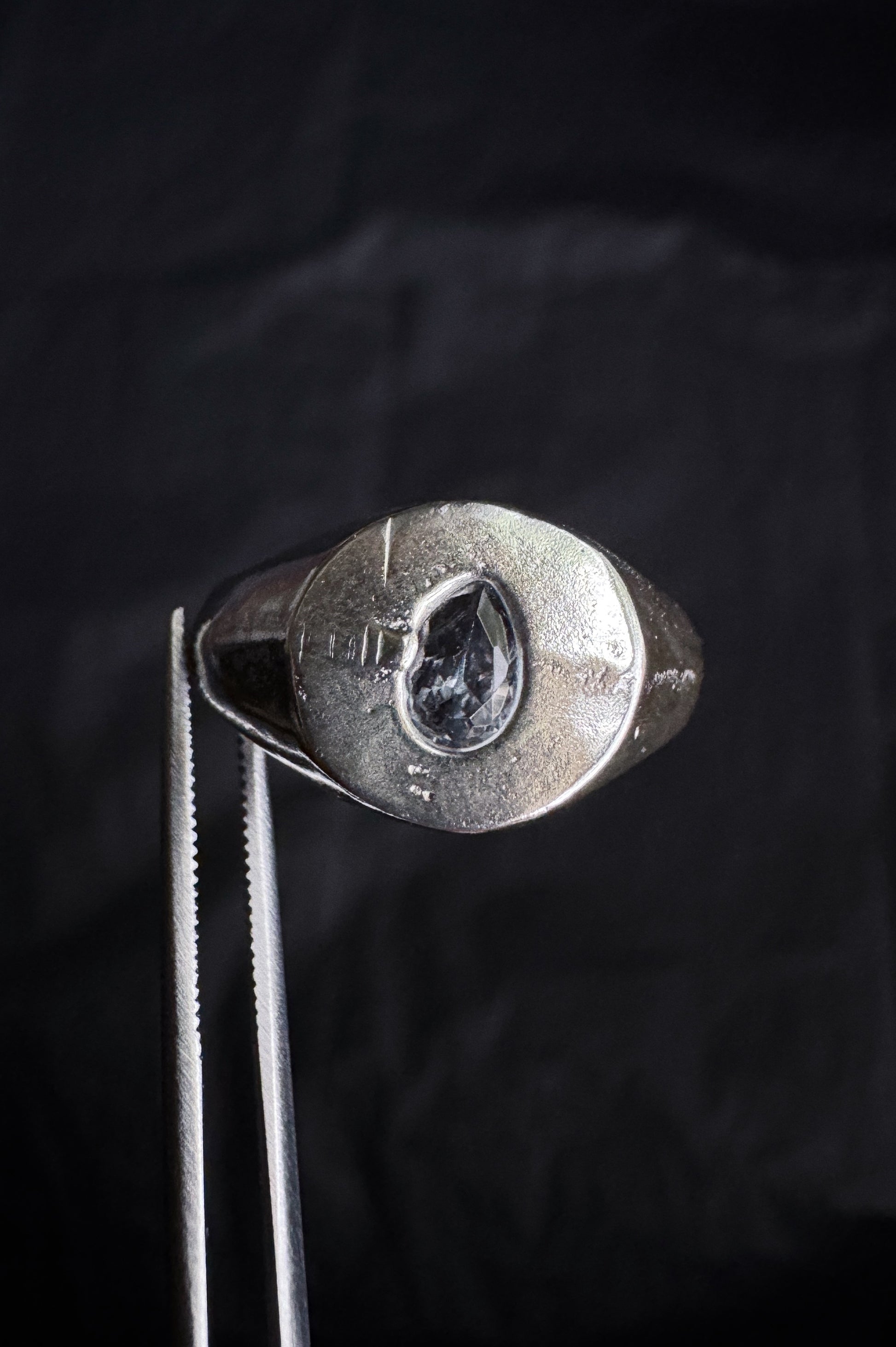 molten silver is poured into a sand mold, the stones are placed before pouring the metal allowing them to move around in the liquid silver before it hardens again. each ring is completely unique and unable to be replicated, this is why each piece looks slightly different :-)