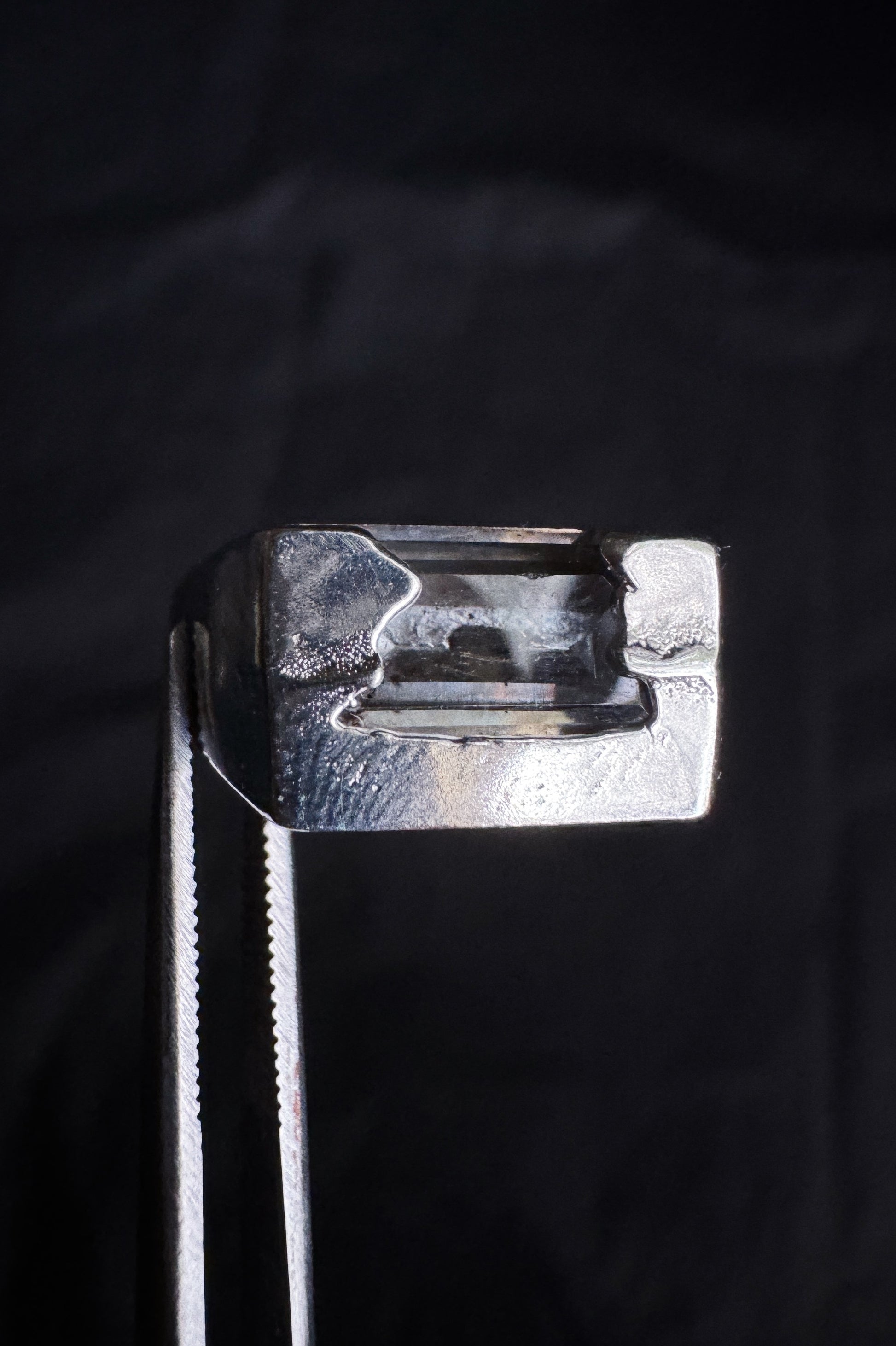 molten silver is poured into a sand mold, the stones are placed before pouring the metal allowing them to move around in the liquid silver before it hardens again. each ring is completely unique and unable to be replicated, this is why each piece looks slightly different :-)